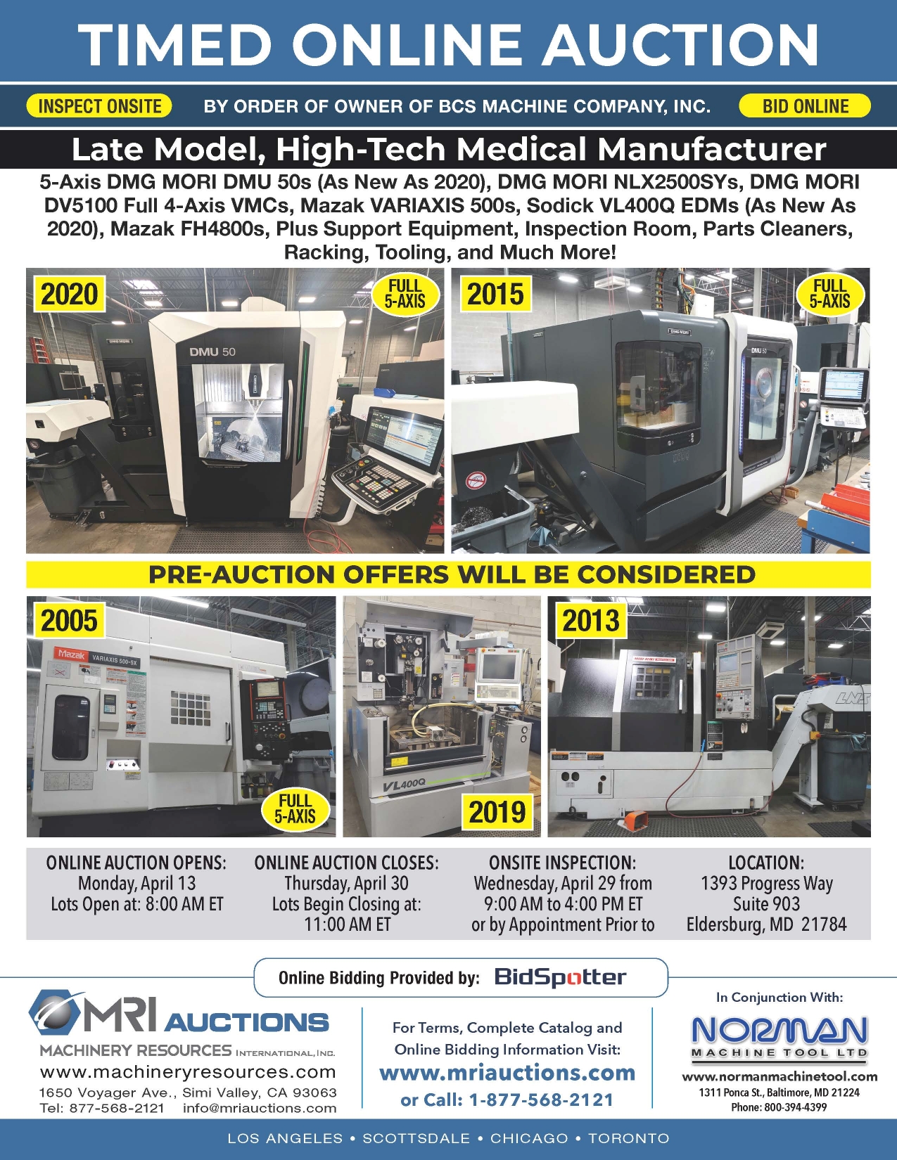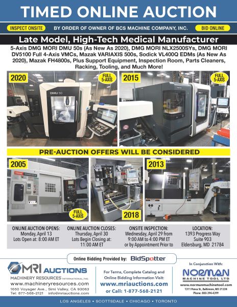 HIGH TECH LATE MODEL MULTI-AXIS MACHINE SHOP AUCTION – SURPLUS TO THE ONGOING NEEDS OF CAREY MANUFACTURING